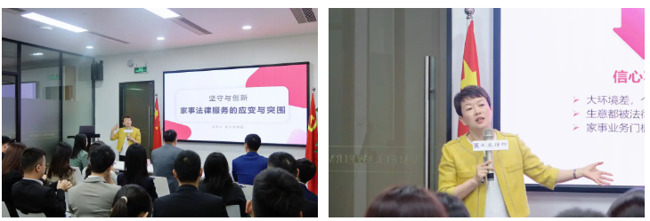 活动中,五美律所主任李小非律师以《坚守与创新:家事法律服务的应变与突围》为主题进行授课。课程围绕“家事法律服务市场现状”“从‘人货场’视角解析行业变化与机遇”及“决策辅助清单的应用”三大板块展开,结合丰富实务案例,深入剖析了当前家事法律业务面临的痛点与创新路径。