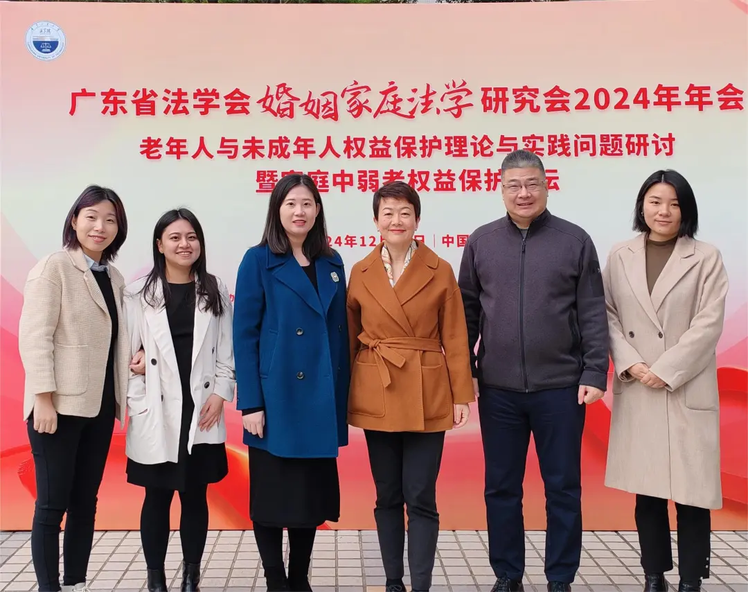 2024年12月14日,广东省法学会婚姻家庭法学研究会2024年会“老年人与未成年人权益保护理论与实践问题研讨”暨家庭中弱者权益保护论坛在广东工业大学召开,广东五美律师事务所李小非律师、卢俊峰律师、欧美欣律师、关虹敏律师、梅杰律师以及郭欢律师出席会议。