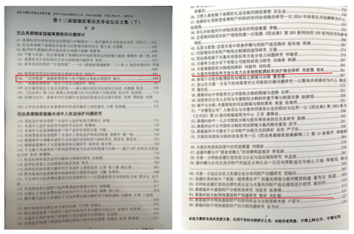 郭欢律师撰写的《离婚纠纷分割网络虚拟财产问题研究》,紧扣当下离婚案件新型财产争议热点,针对网络虚拟财产属性、权属认定、离婚分割规则、举证难点等问题展开研究,紧跟数字时代家事法律服务需求,完善新型家事财产权益保护研究,贴合当下司法实践发展趋势。