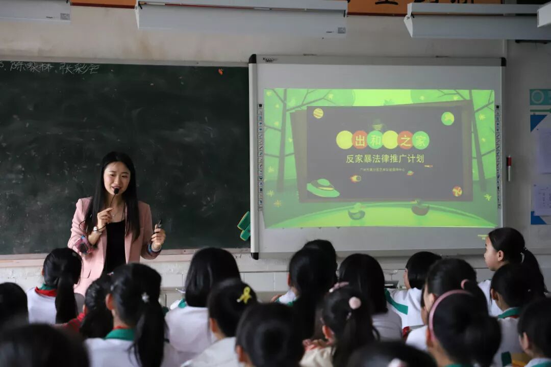 2019年3月5日,我所吴舒扬律师作为南沙妇联第二届公益创投“绘出和睦之家·反家暴法律支持计划”的法律专家,受绿叶课堂青少年法治教育项目的邀约,为广州市南沙区新徽学校近百名高年级女同学讲授与反家暴、防性侵主题相关的法律讲座。面对稚嫩的脸庞,吴律师抛开严肃的专业形象,从兼具趣味性的案例出发,以轻松的交流方式为孩子们传递反家暴法律常识并为孩子们树立防性侵意识,让孩子能够在五美律师的关爱下健康、快乐成长。
